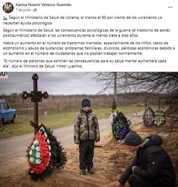Velasco Guzmán es psicóloga de profesión y ha relatado en sus redes sociales el asesinato de niños, de médicos, de embarazadas y civiles inocentes, así como los problemas mentales y familiares que conlleva sobrevivir bajo el asedio de un conflicto que pudiera cambiar toda su vida o la de su familia de un momento a otro.