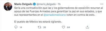 Por su parte, el líder nacional de Morena, señaló que sería una contradición que los gobernadores soliciten el apoyo de las Fuerzas Armadas, por lo que este día los senadores tienen una nueva oportunidad de votar a favor de su permanencia hasta 2028, y advirtió que “el pueblo de México les estará vigilando”.