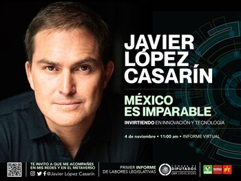 Javier López Casarín, diputado federal perteneciente a la bancada del Partido Verde Ecologista de México y presidente de la Comisión de Ciencia, Tecnología e Innovación de la Cámara de Diputados, será el primer legislador a nivel mundial en presentar un informe de labores en el metaverso.