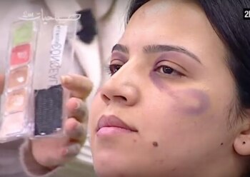 "Esperemos que estos consejos de belleza te ayuden a desarrollar tu vida con normalidad", señaló Mouline, quien agregó: "Es un tema del que no deberíamos hablar, pero desafortunadamente es así". Además, la conductora enumeró varias marcas de productos que eran ideales para ese tipo de ocasiones. "Utilice base amarilla", puede escucharse que dice en árabe la mujer como uno de los tips. "Si usas base blanca, los golpes rojos se notarán siempre".