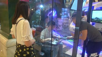 Los usuarios de estas cápsulas pueden reclinarse en un sillón con una gran pantalla y jugar a los videojuegos rodeados por paredes de cristal transparente que les aíslan del bullicio generado por los otros compradores.