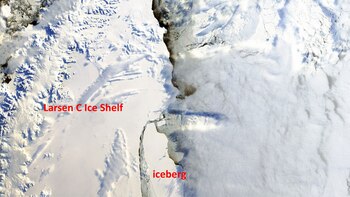 A partir de las imágenes satelitales, los expertos calcularon que en las últimas dos semanas de agosto la distancia entre el enorme iceberg -de casi 6.000 kilómetros cuadrados de superficie- y la plataforma Larsen C pasó de 35 kilómetros a 75.