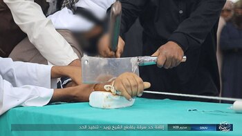 El Estado Islámico (ISIS, por sus siglas en inglés) difundió imágenes del momento en que un grupo de militantes del grupo terrorista le corta la mano con una cuchilla de carnicero a un supuesto ladrón en Egipto.