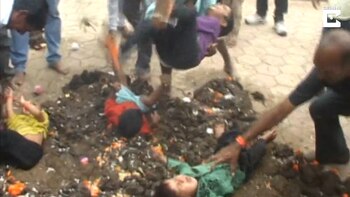Durante semanas, los habitantes de Betul colectaron el estiércol en algunos montículos. Este domingo, luego de rezar a los dioses hindúes, los padres llevaron a los niños a partir del año de edad a lanzarlos sobre la montaña. La actividad continuó durante todo el día, hasta que todos los niños del pueblo pasaron por el curioso ritual.
