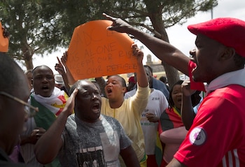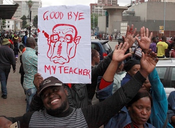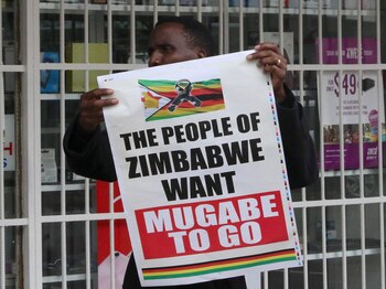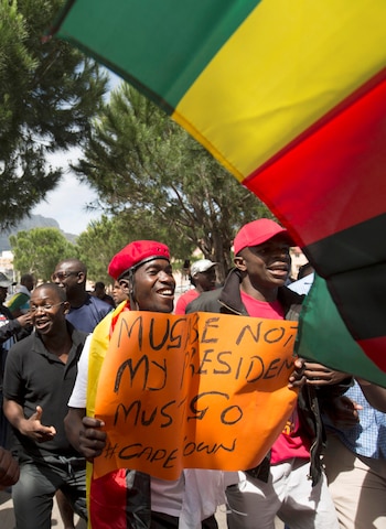 "Demasiado es demasiado, Mugabe tiene que irse", "Descansa en paz Mugabe", "No a la dinastía Mugabe", se podía leer en las pancartas que enarbolaban los manifestantes, la mayoría de ellos negros pero también blancos, un hecho poco común.