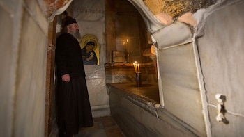 En marzo, el recién restaurado santuario que cubre y rodea la tumba de Jesús fue mostrado después de un minucioso trabajo. Un santuario del siglo XIX, rematado con una cúpula en forma de cebolla, alberga la tumba de Jesús.