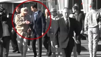 El video muestra a Al Assad caminando apresuradamente detrás de Putin, tratando de alcanzar sus pasos. Sin embargo, en ese momento fue detenido por un soldado ruso que puso su mano para frenar la marcha del mandatario sirio.