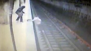 Al arrojarla, la sospechosa le dio un puntapié, mientras la joven intentaba subir desesperadamente a la plataforma.
