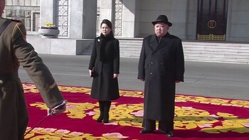 Junto a su esposa, Ri Sol-ju, el dictador presenció desde el balcón de la Casa de Estudios del Pueblo de Pyongyang el desfile en la plaza Kim Il-sung de la capital, según mostraron las imágenes en diferido de la cadena estatal de televisión KCTV.