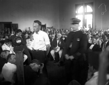 El juicio empezó el 10 de julio de 1925 sin que el brutal verano diera tregua. Ya en el tribunal, y contra la rígida costumbre de la época, ambos abogados lograron permiso del juez de la causa, John Raulston, para despojarse de sus sacos y recibir, desde el perezoso y vetusto ventilador de techo, una brizna de aire…