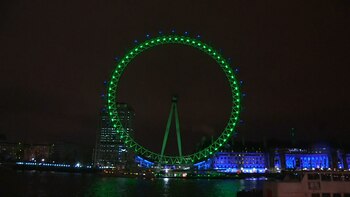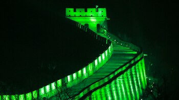 Durante el largo fin de semana, los edificios más representativos de la capital se tiñen de verde, una iniciativa que desde hace varios años copian en otros lugares de todo el mundo, como en las pirámides de Giza, la parisina Torre Eiffel, el Big Ben de Londres, el Empire State de Nueva York o la Ópera de Sidney.