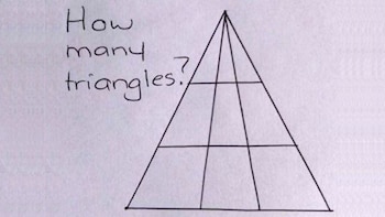 La respuesta más frecuente es 10. Todos los que se deciden por esa cifra cuentan el triángulo principal y las nueve figuras que hay en su interior… Pero es incorrecto, ya que solo la fila superior está compuesta de triángulos, el resto son cuadriláteros.