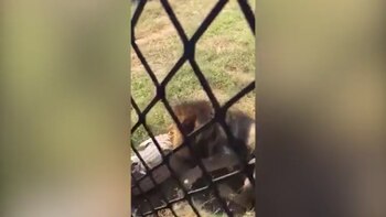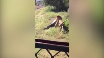 El terrible momento que vivió el dueño del parque silvestre fue grabado por un testigo que se encontraba fuera de la jaula del león.