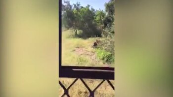 El león arrastró unos metros al hombre, quien quedó inmóvil por unos segundos. Luego, el felino lo volvió a arrastrar hacia unos arbustos. Mientras tanto, los espectadores pedían ayuda.