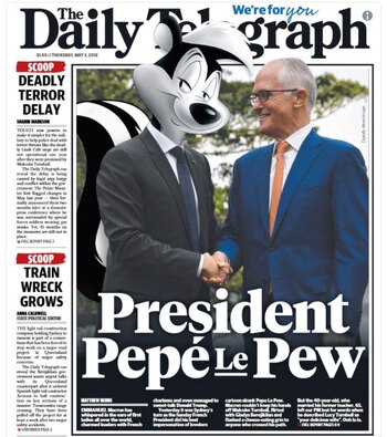 La metedura de pata -"delicious", en lugar de "delightful", en inglés quiere decir "sabroso" o "excitante"- provocó numerosas bromas: un tabloide de Sidney publicó una foto a página completa de Macron con la cara de Pepe Le Pew, también conocido como "Zorrillo", la enamoradiza mofeta francesa de Loonely Tunes.