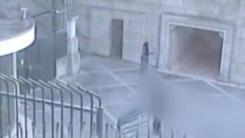 En las imágenes se la puede observar, cubierta con su burka, caminando de un lado para el otro en las inmediaciones de la sede del MI6. En todo momento sostiene su teléfono celular. Incluso en un momento se detiene para tomarse una selfie.