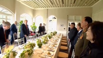 Todo según lo establecido detalladamente por las delegaciones de ambos países. Nada podía quedar librado al azar. O casi nada. Trump dejó lugar para una anécdota que llamó la atención del Líder Supremo. Como suele hacer en sus reuniones, el presidente norteamericano se salió brevemente del protocolo y descolocó a Kim Jong-un.