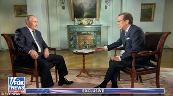 Continuando con su resumen de los puntos básicos del documento, el entrevistador intentó entregarle los papeles. "¿Puedo darle esto para que lo mire?", preguntó Wallace, pero el presidente ruso mantuvo una mirada impasible. Tras unos segundos, evitó tocar los archivos y le indicó que los dejara sobre la mesa.