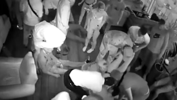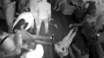La filmación de una cámara de seguridad muestra cómo el sujeto se irritó porque otros lo rozaban cuando bailaba y atacó brutalmente a un grupo de amigos y a cualquier persona que intentara detenerlo.