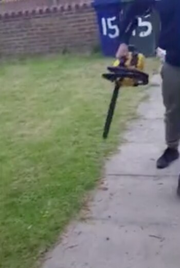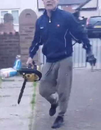 No está claro el origen de la discusión, pero el final da miedo: un hombre intenta entrar con una motosierra encendida en la casa de una mujer para atacarla a ella, a su pareja y quien sabe si también a su hijo.