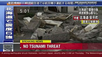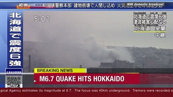 La cadena pública NHK mostró una pared de ladrillos derrumbada y espejos quebrados en una casa y citó a la policía local diciendo que habían cortes de electricidad y algunas personas atrapadas en estructuras colapsadas.