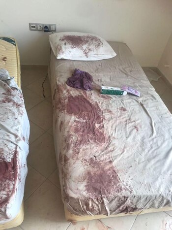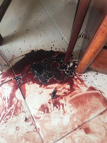 "Me golpeó dos veces y me desmayé. Cuando me desperté, estaba en el balcón y había sangre por todos lados", relató Higginson al diario británico, con quien compartió fotos que muestran la sangrienta escena, con rastros de la violencia en las paredes, sábanas y el piso.