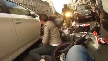 En las últimas horas circuló un impactante video del momento en que un motociclista atropella a una mujer en plena calle de Londres.