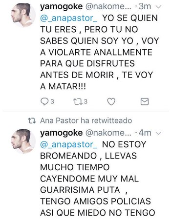 "Yo sé quién eres, pero tú no sabes quién soy yo. Voy a violarte analmente para que disfrutes antes de morir, te voy a matar. Llevas mucho tiempo cayéndome muy mal, guarrísima p…". Esa amenaza representa uno de los tantos hilos de las redes sociales que permite reflejar una tendencia en continuo crecimiento: la violencia machista contra aquellas periodistas que defienden la igualdad de género en un medio de prensa.