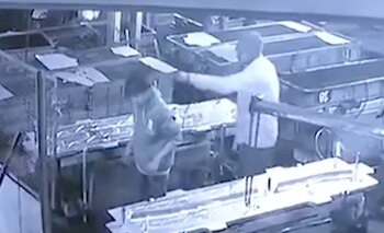 De inmediato es notable la reacción del joven, que salta, se tambalea y cae al suelo ante la mirada incrédula del supervisor.