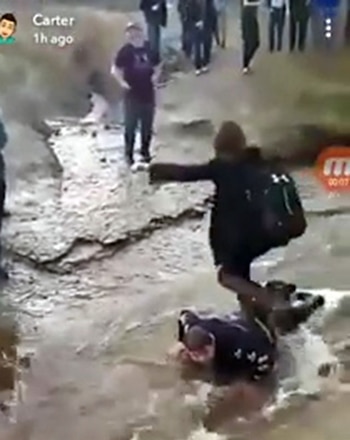 La grabación lo mostraba a Corbett en el medio de la escena. Podía vérselo ser el objeto de las burlas del resto de sus compañeros. En un arroyo mugriento, lo hacen recostar para que ellos pudieran pisarlo y cruzar del otro lado del charco. Era un "juego", a expensas de la humillación de otro. Todos ríen, salvo él, que cuando quiso rehusarse recibió insultos y órdenes de que hiciera lo que ellos querían.