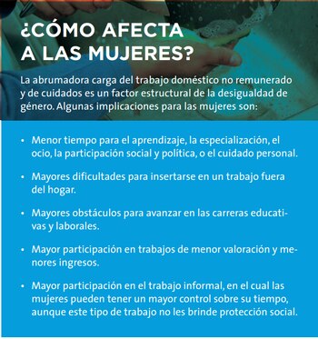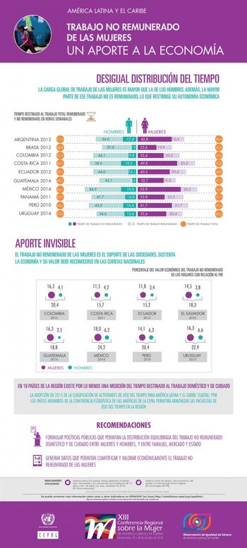 Y es que los diversos organismos de la ONU han descrito que existe una problemática en estos países para reconocer la carga de trabajo extra de las mujeres al trabajo no remunerado que pareciera ser invisible en el hogar y con los cuidados de los hijos, ancianos y de los enfermos.