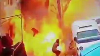 La filmación de una cámara de seguridad, difundida por el medio especializado ConflictNews, mostró el momento del estallido.