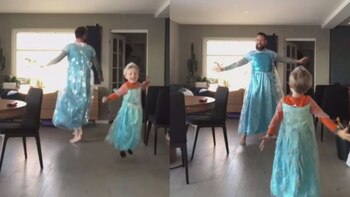 Entonces un día, aprovechando que estaban solos en casa y que podían dar rienda suelta a la imaginación, se disfrazaron y empezaron a bailar los dos, padre e hijo, como Elsa la canción.