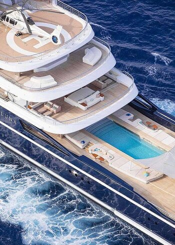 Luna, uno de los barcos más lujosos del mundo, cuenta con una piscina al aire libre de 20 metros, una pista de aterrizaje para helicópteros y un mini submarino.