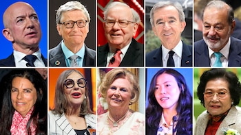 Si se suman las fortunas de Jeff Bezos, Bill Gates, Warren Buffett, Bernard Arnault, Carlos Slim, Amancio Ortega, Larry Ellison, Mark Zuckerberg, Michael Bloomberg y Larry Page, estos diez hombres reúnen USD 781.600 millones.