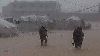 En la provincia de Alepo las inundaciones destruyeron carpas en varios campamentos para desplazados y un hospital en el campo tuvo que cerrar.