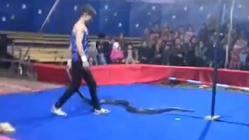 La escena es escalofriante: el público del circo sentado en las gradas sigue el espectáculo del entrenador de serpientes que tiene en sus manos una constrictor, que apoya sobre su cuerpo. El show sigue, el hombre la enrosca sobre su cuello hasta que, de repente, cae al piso mientras realiza algunos movimientos espasmódicos.