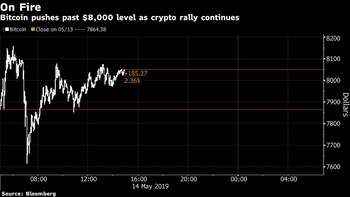 El bitcoin se fortaleció más allá de los US$8.000 por primera vez en unos 10 meses el martes en un nuevo hito mientras las criptomonedas continuaban su tórrido avance.