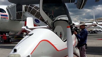 A pocos metros de la pista de aterrizaje de París-Le Bourget, donde Airbus presenta sus prototipos más recientes, Eduardo Domínguez, ingeniero de Airbus y encargado de los programas de aviones urbanos, habló con RFI de dos productos innovadores: el CityAirbus y el Vahana, dos pequeñas aeronaves híbridas entre drone, helicóptero y avión. "Ambos vehículos son totalmente eléctricos, libres de emisiones. CityAirbus es un quadcopter que pesa dos toneladas, diseñado para llevar a cuatro personas. Y el Vahana, construido en la Silicon Valley, es un vehículo autónomo (sin piloto), completamente eléctrico, con alas giratorias que se adaptan al despegue vertical y al vuelo hacia adelante como si fuera un avión", dijo el ingeniero de origen español.