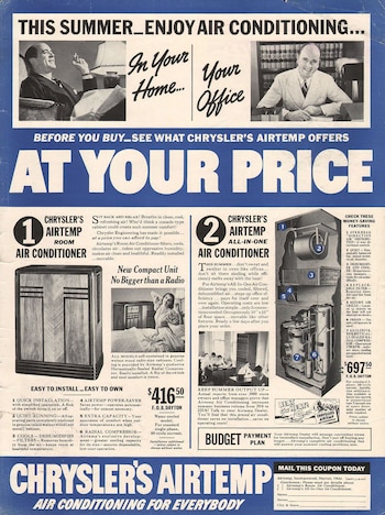En 1945, la revista Life publicó cuatro páginas sobre el asunto: "Aire acondicionado: luego de la guerra será lo suficientemente económico como para instalarlo en los hogares". Lo que antes era un lujo —el rey de Siam, Prajadhipok o Rama VII, había ordenado unidades para su palacio en 1931— ahora se fabricaría en grandes cantidades para el mercado de masas.