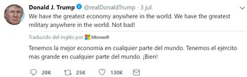 Para Trump, la fiesta patria significó un momento para lucir "el ejército más fuerte y más avanzado del mundo", como lo escribió en su Twitter.