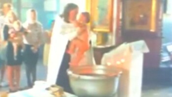 Una madre corrió en ayuda de su hijo pequeño después de que un sacerdote "sádico" lo sumergiera violentamente en agua durante su bautismo. El inquietante video muestra al sacerdote ortodoxo ruso Fotiy Necheporenko sumergiendo por la fuerza al niño de un año desnudo en la fuente.