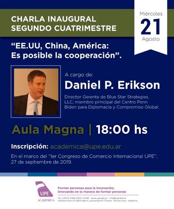 Daniel Erikson está en Buenos Aires para brindar conferencias sobre las relaciones entre la región y China