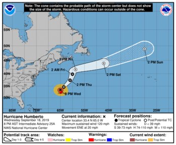 "El huracán Humberto es una amenaza", dijo el Servicio Meteorológico de Bermudas en su último aviso a la población, aunque las autoridades dijeron no esperar lo peor.