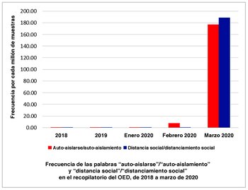 The Guardian destacó que el OED incluyó términos como teletrabajo (WFH, de work from home), distancia social y auto-aislamiento, actualmente en el habla común de las personas. “La directora ejecutiva del diccionario, Bernadette Paton, dijo que ‘para los lexicógrafos fue una experiencia poco común observar cómo aumentaba exponencialmente el uso de una única palabra en un periodo muy breve, y ver cómo esa palabra llegaba a dominar abrumadoramente el discurso global, al punto de la exclusión de otros temas'”.