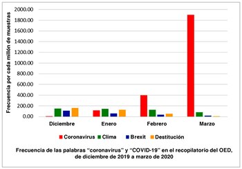Aludía así a que meses antes de que el mundo entero quedara trabado en las conversaciones sobre el coronavirus, las palabras dominantes eran otras: clima, por el cambio climático y el calentamiento global; Brexit, por la separación del Reino Unido de la Unión Europea; destitución, porque la Cámara de Representantes de los Estados Unidos aprobó el impeachment del presidente Donald Trump en diciembre de 2019, por abuso de poder y obstrucción al Congreso, cargos de los que fue exonerado por el Senado en febrero de 2020. Pero en marzo nadie parecía recordar ya esos temas.