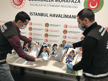 Los oficiales de aduanas del aeropuerto de Estambul detuvieron este miércoles a un contrabandista que intentaba ingresar a Turquía con cocaína oculta en cuadros de la leyenda del fútbol argentino Diego Armando Maradona.