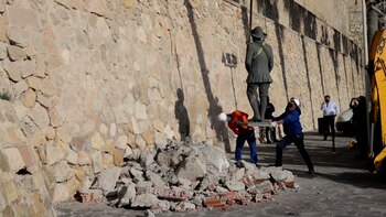 Sin mucha fanfarria, un grupo de trabajadores operó una excavadora mecánica y pesados taladros para cortar la plataforma de ladrillos en la que se encontraba la estatua, que luego fue retirada en un camión.