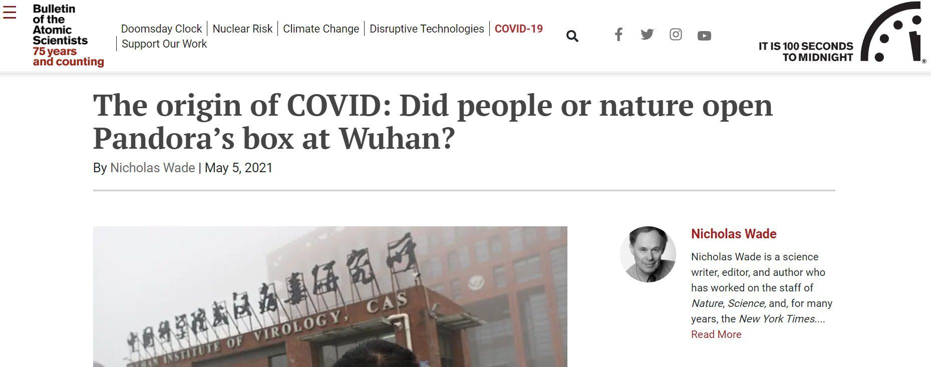 “Me parece que los defensores de la fuga de laboratorio pueden explicar todos los datos disponibles sobre el SARS 2 mucho más fácilmente que aquellos que favorecen la emergencia natural”, escribe Wade en su artículo, publicado en el Bulletin of Atomic Scientists, una prestigiosa revista que trata temas relacionados con la seguridad mundial y las políticas públicas.