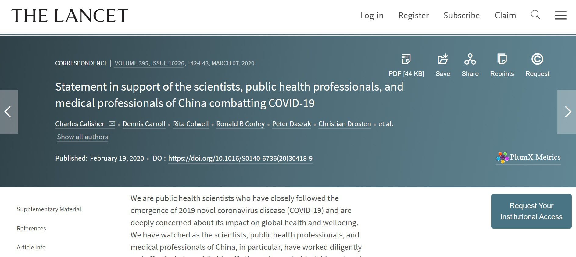 Daszak estuvo detrás de una carta publicada en la prestigiosa revista The Lancet en la que un grupo de 27 expertos condenaban “enérgicamente las teorías de conspiración que sugieren que COVID-19 no tiene un origen natural”, y defendían a los científicos chinos. Wade observa que esa carta fue publicada el 19 de febrero de 2020, “cuando era demasiado pronto para que alguien pudiera estar seguro de lo que había sucedido”.